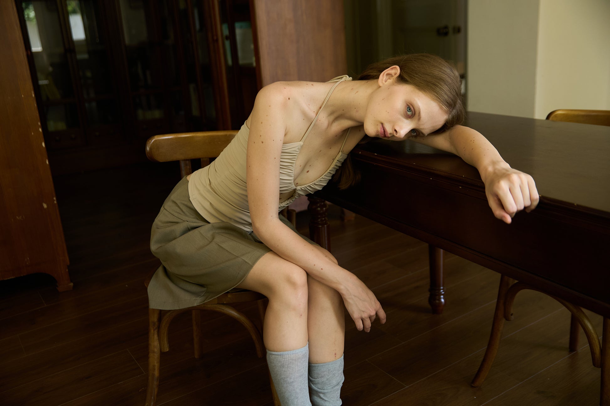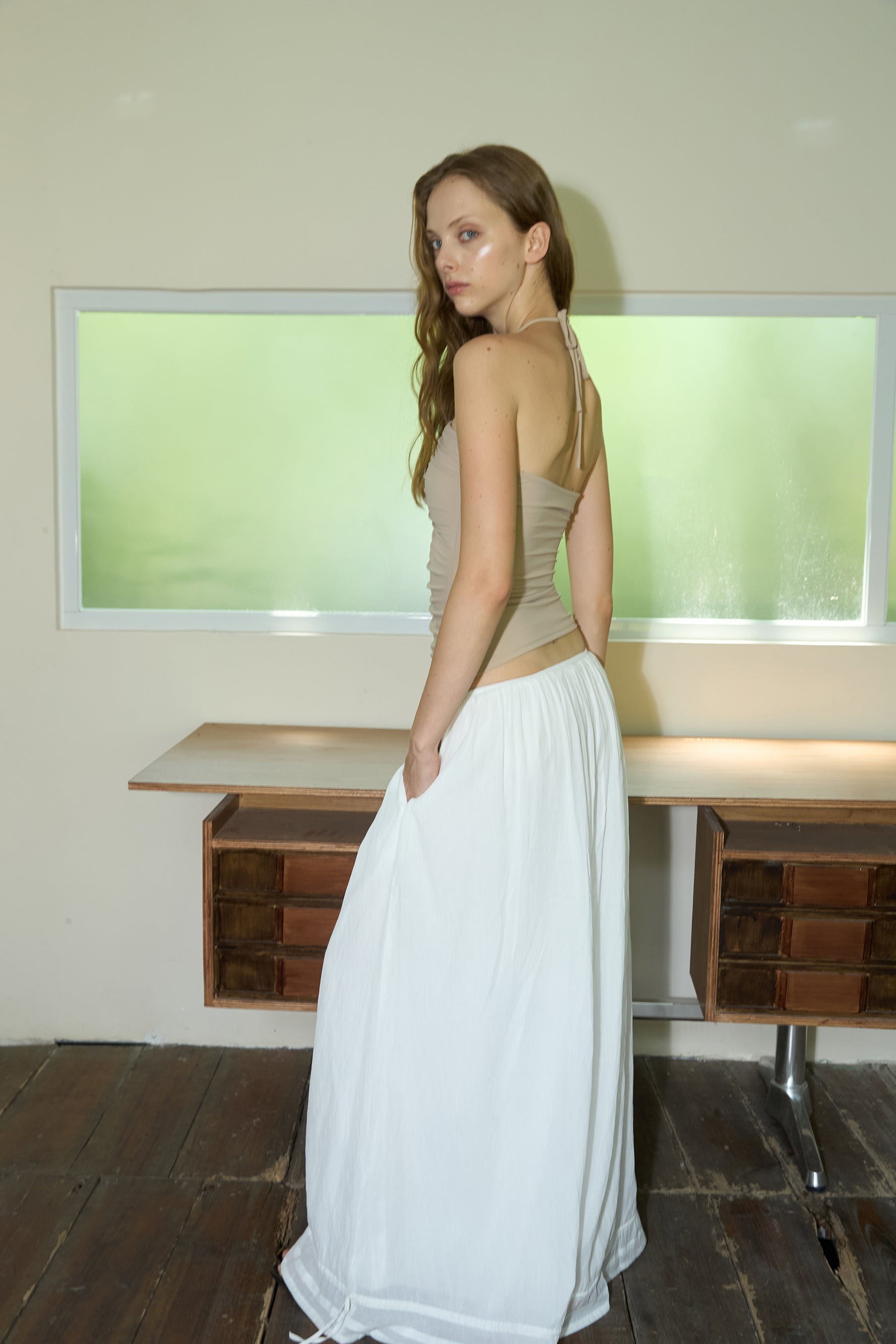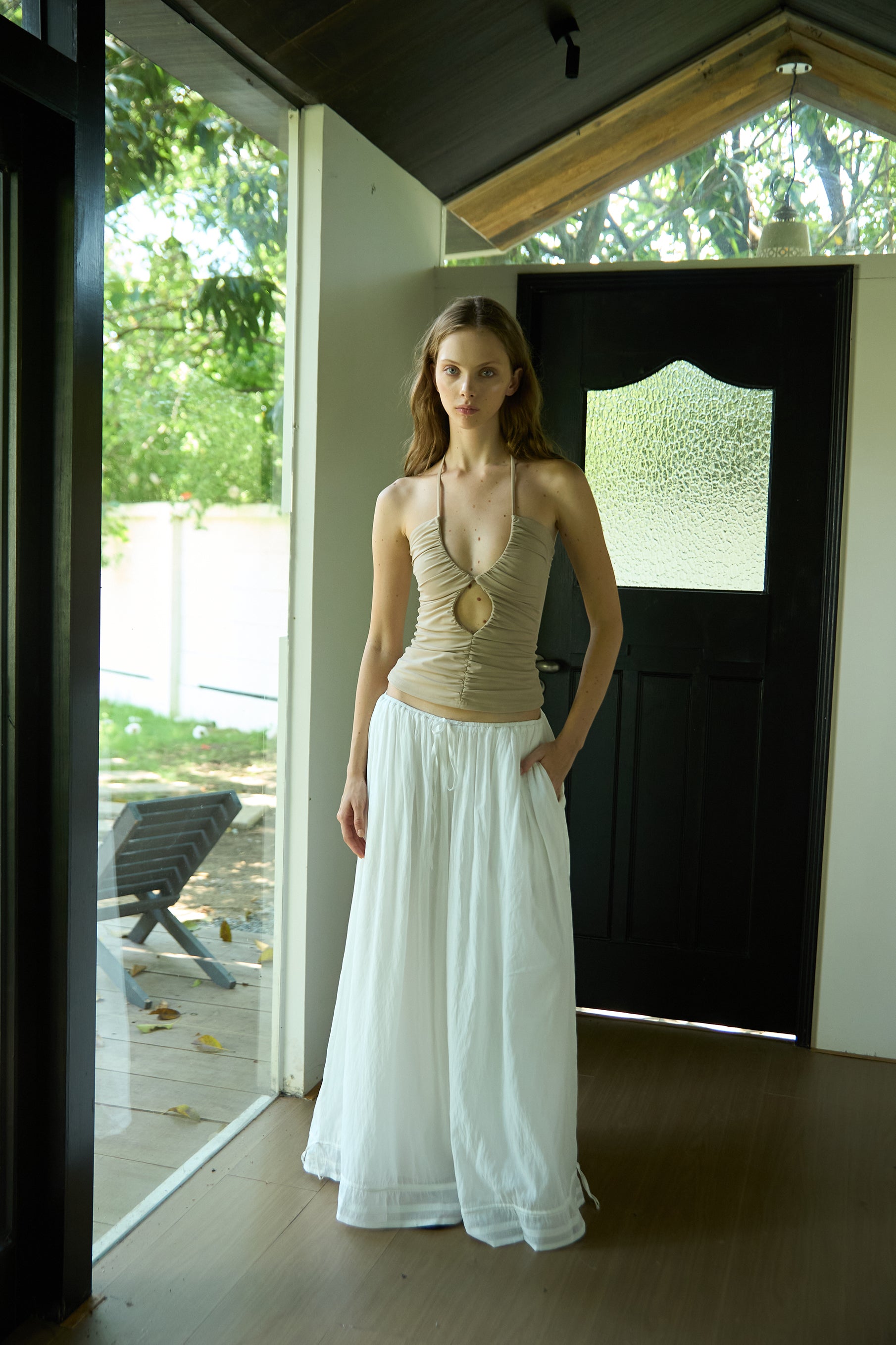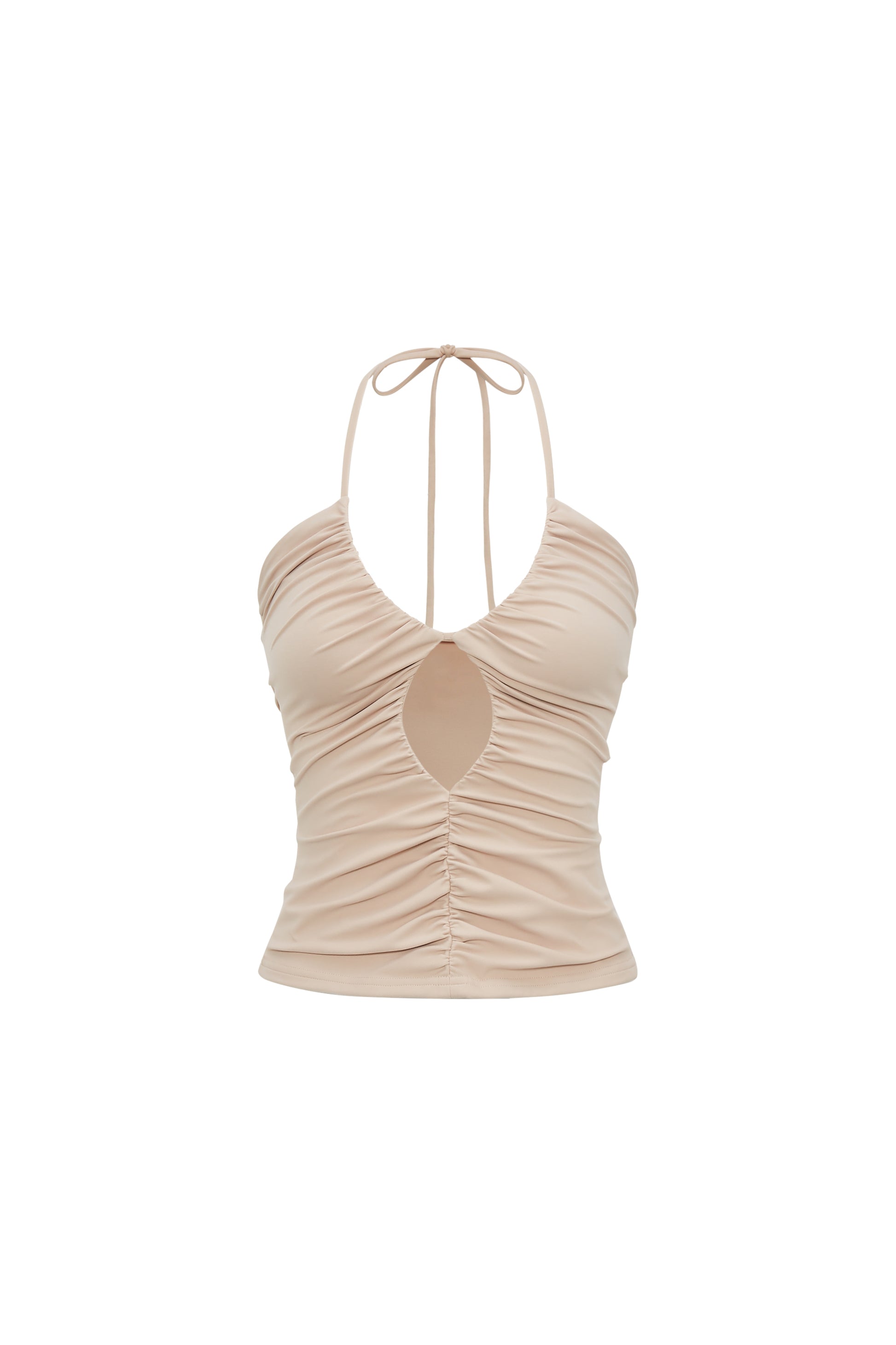 Nude Stretch Fitted Pleated Halter Top
