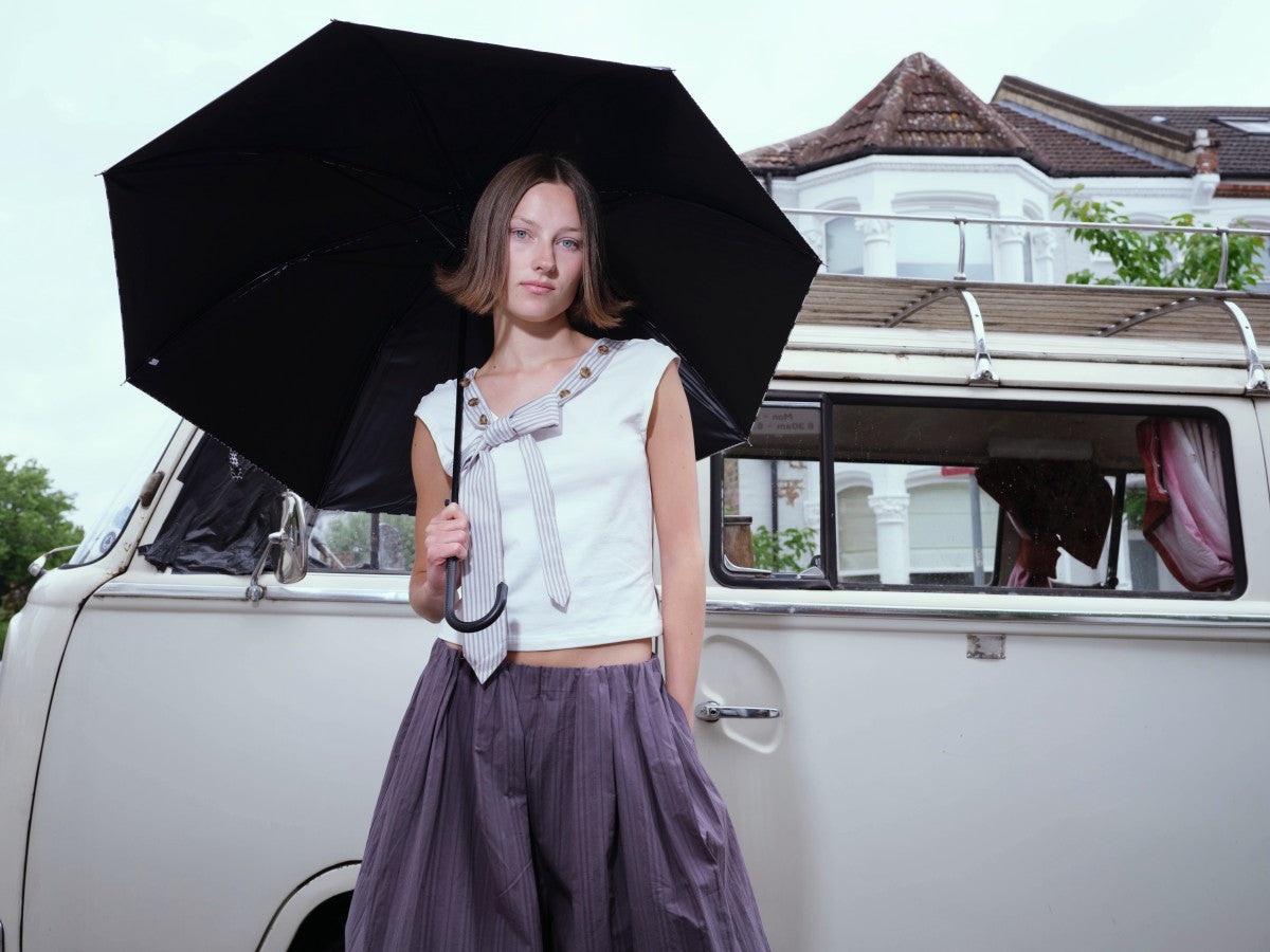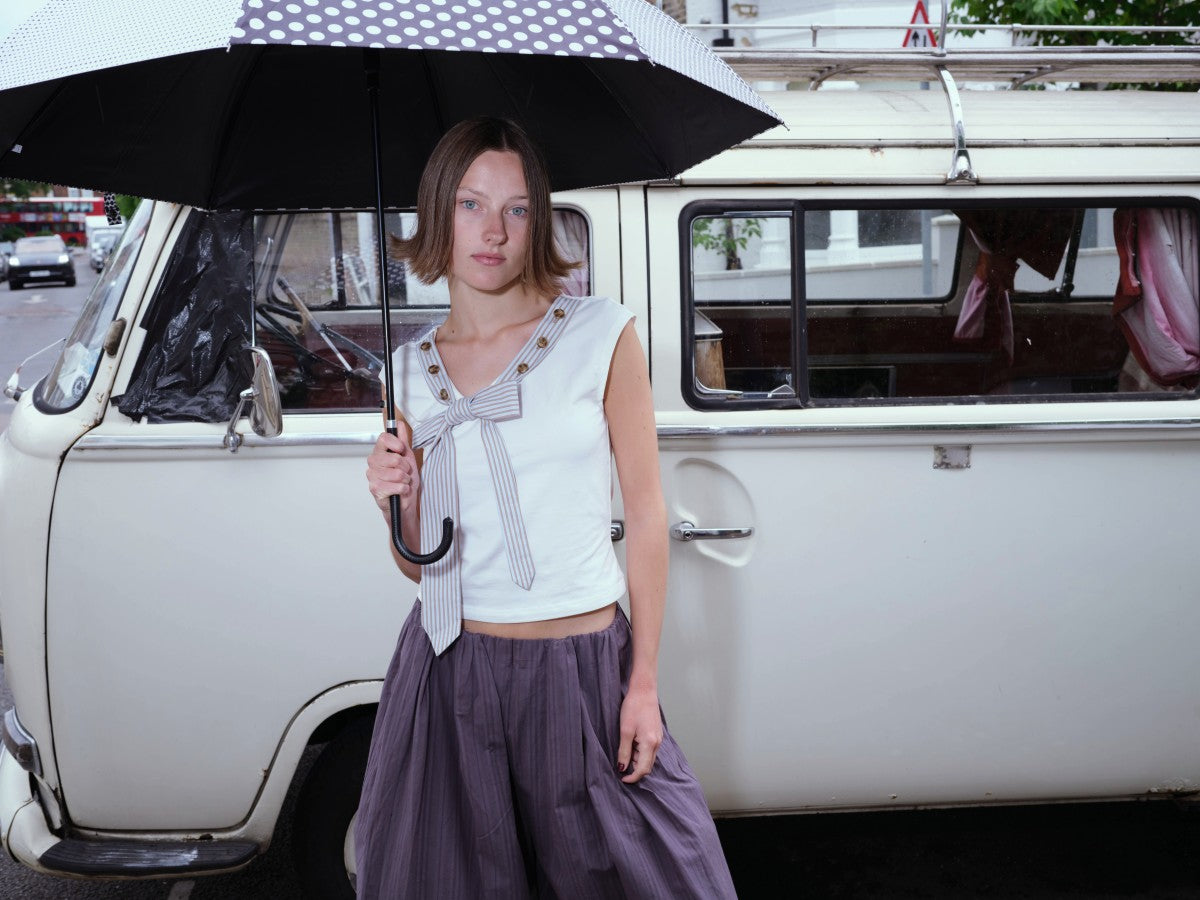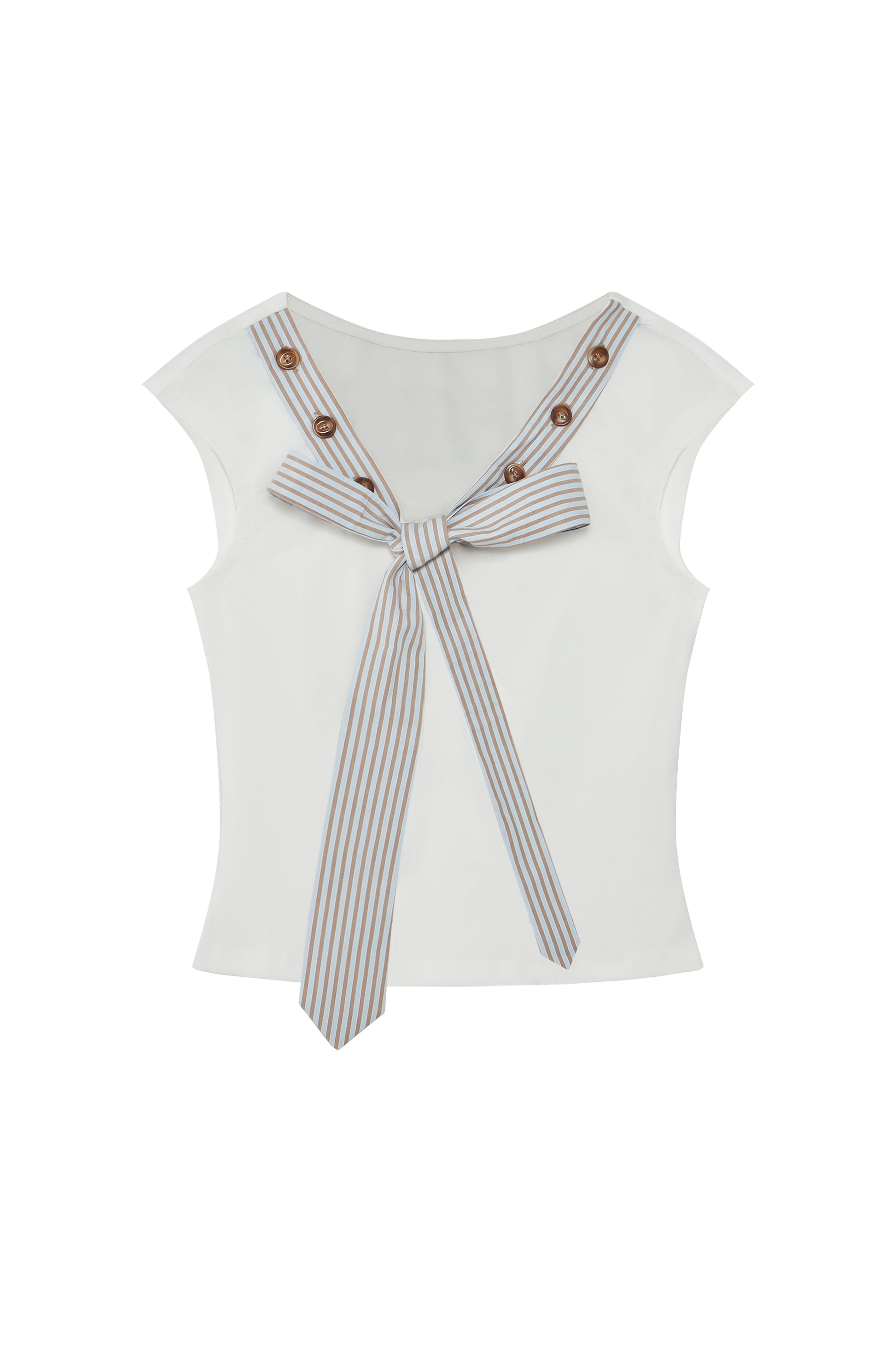 Striped Tie-collar Button Multi-way T-shirt