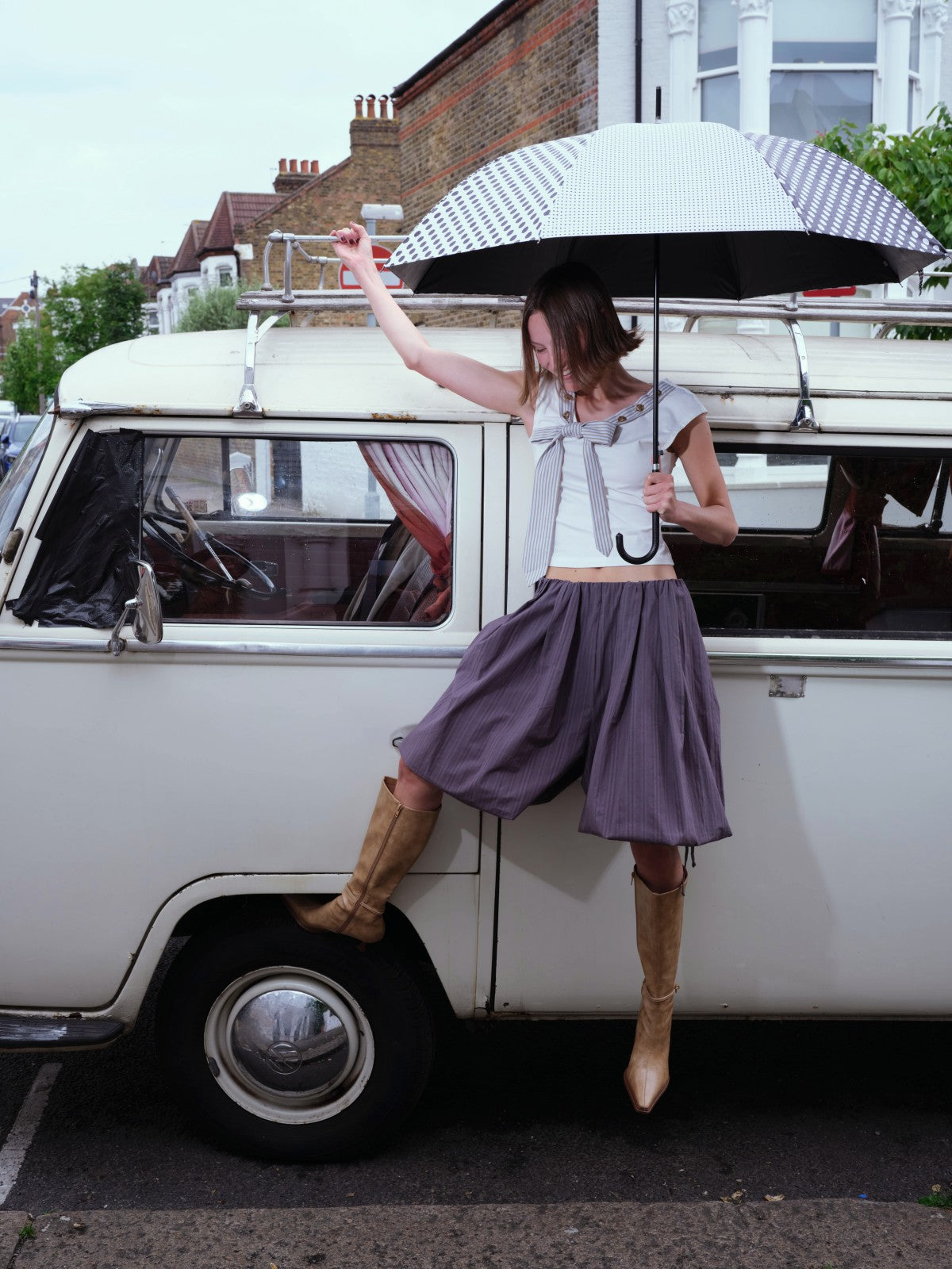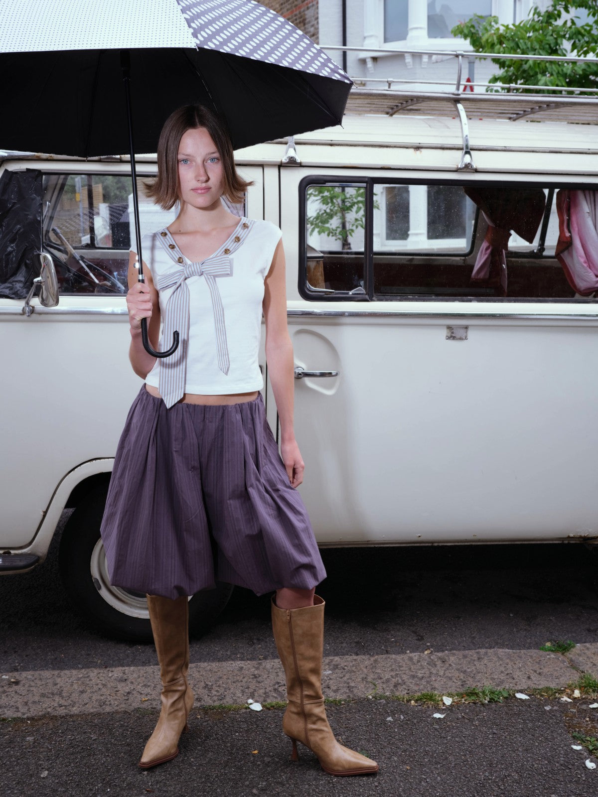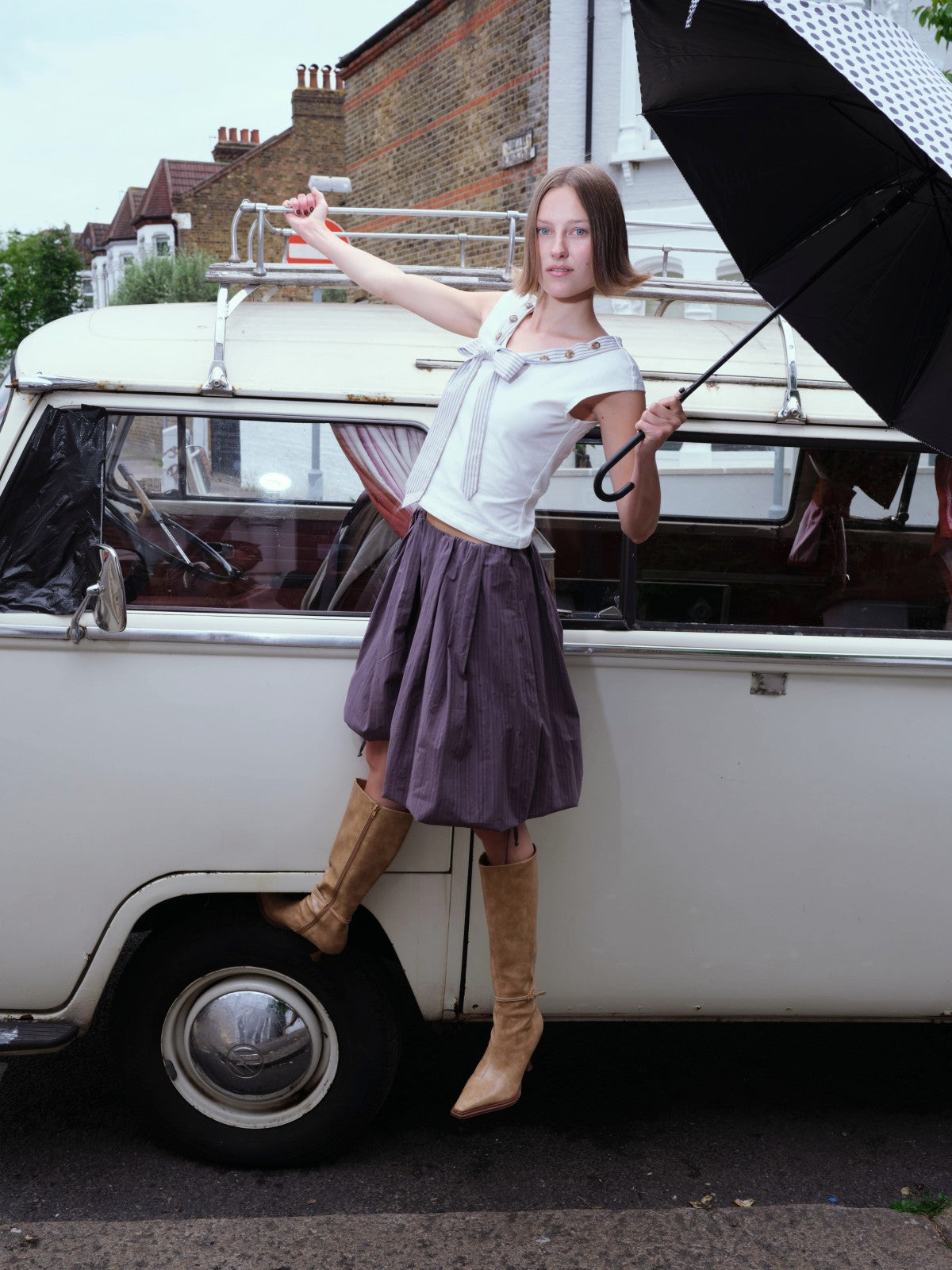 Striped Tie-collar Button Multi-way T-shirt